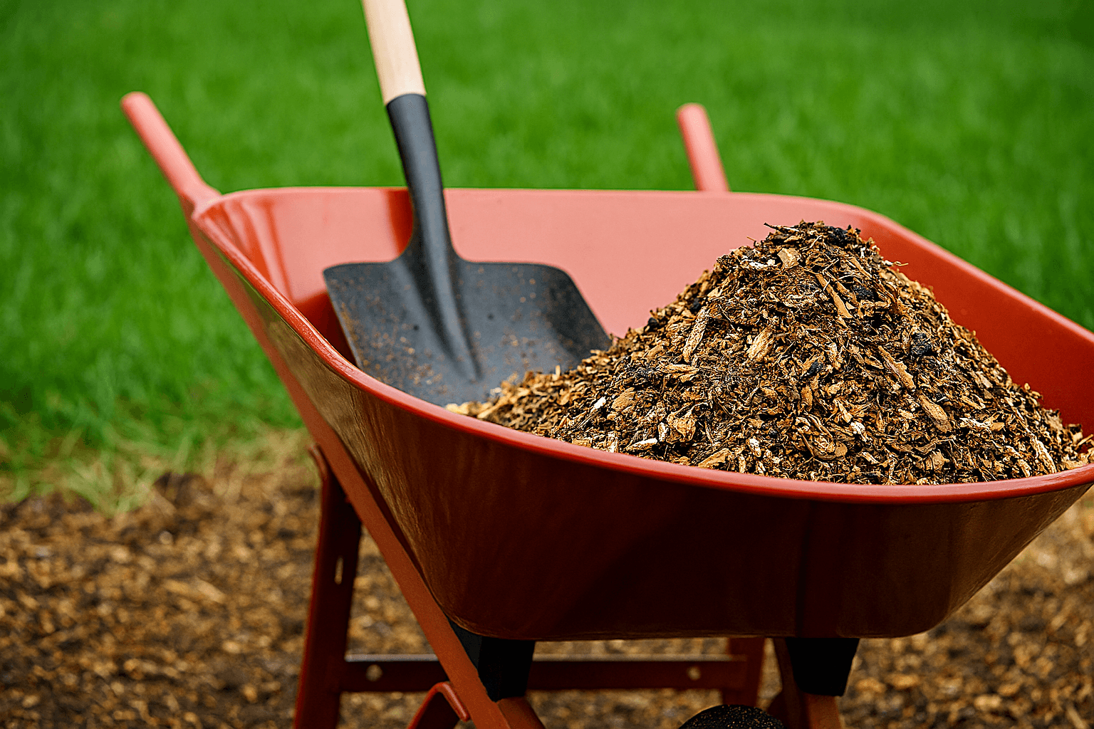 Refreshing beds with mulch to improve appearance and suppress weeds.